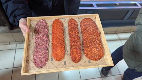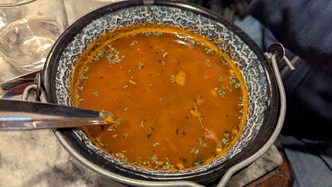 I’ve shared that one of our go-to activities when we visit a new city is a food tour. We appreciate expert guidance of foods characteristic of a place, and we also like the chance to get additional recommendations from tour guides. Our Budapest food tour was led by Ben, with Francesca in training. The group was small, just our families and a few others. Over the three hours, we tried salami, pickled items, lángos, chimney cake, goulash soup, and drinks.